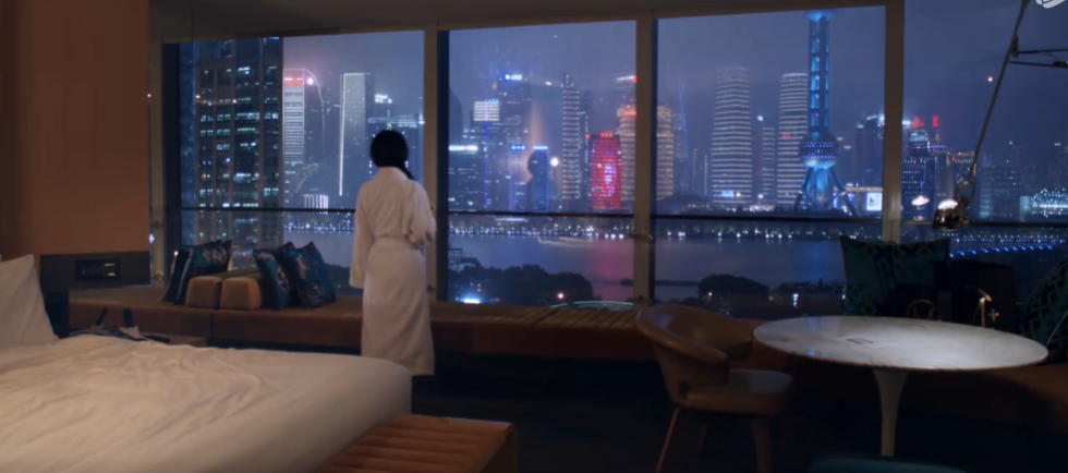 比如男女主躺在能看见东方明珠的外滩大平层里。