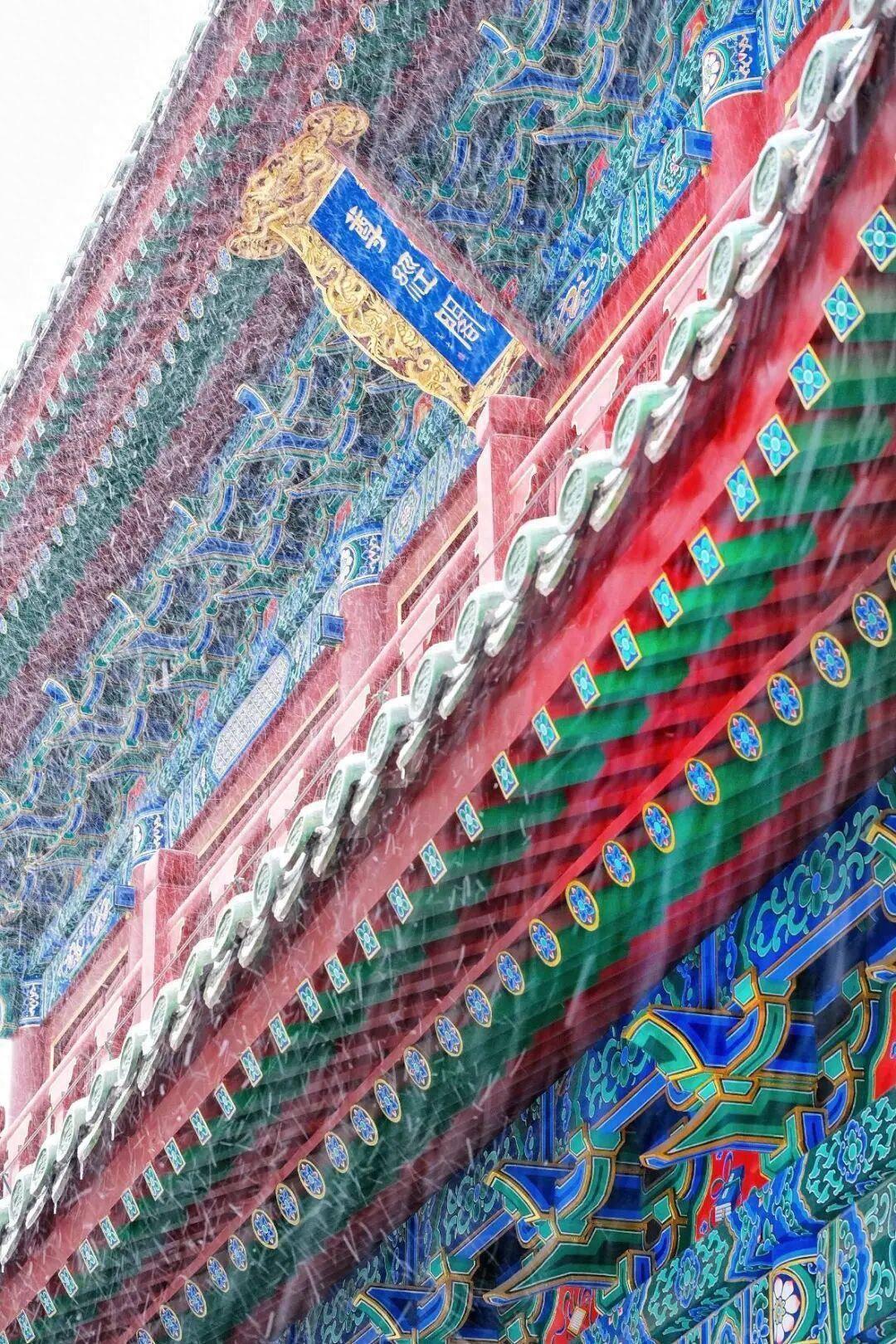 朱红是冬日里最鲜活的中式印记。落雪轻覆在朱红景致之上,红的热烈与白的清冽撞出温柔的张力,阳光漫过,光影在纹路间流转,千年的喜庆与安宁都凝在了这抹红里,驱散了冬日的寒凉。